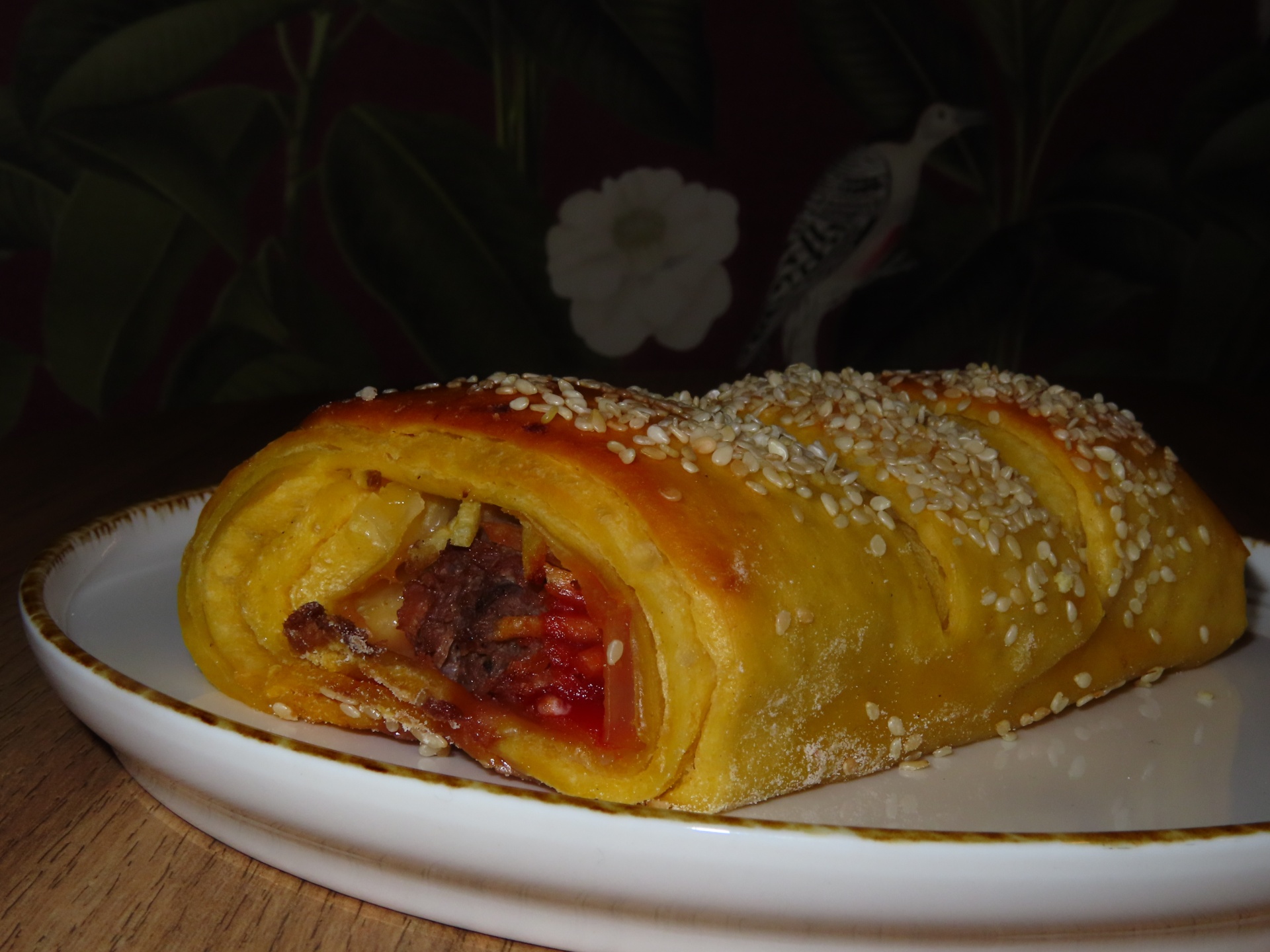 Preparado em massa brioche e recheado com salsicha, pitada de molho tomate, mostarda, batata palha e tipo "mousarella".
